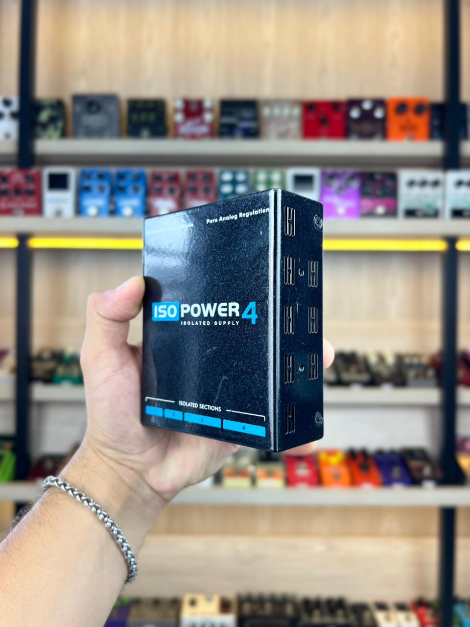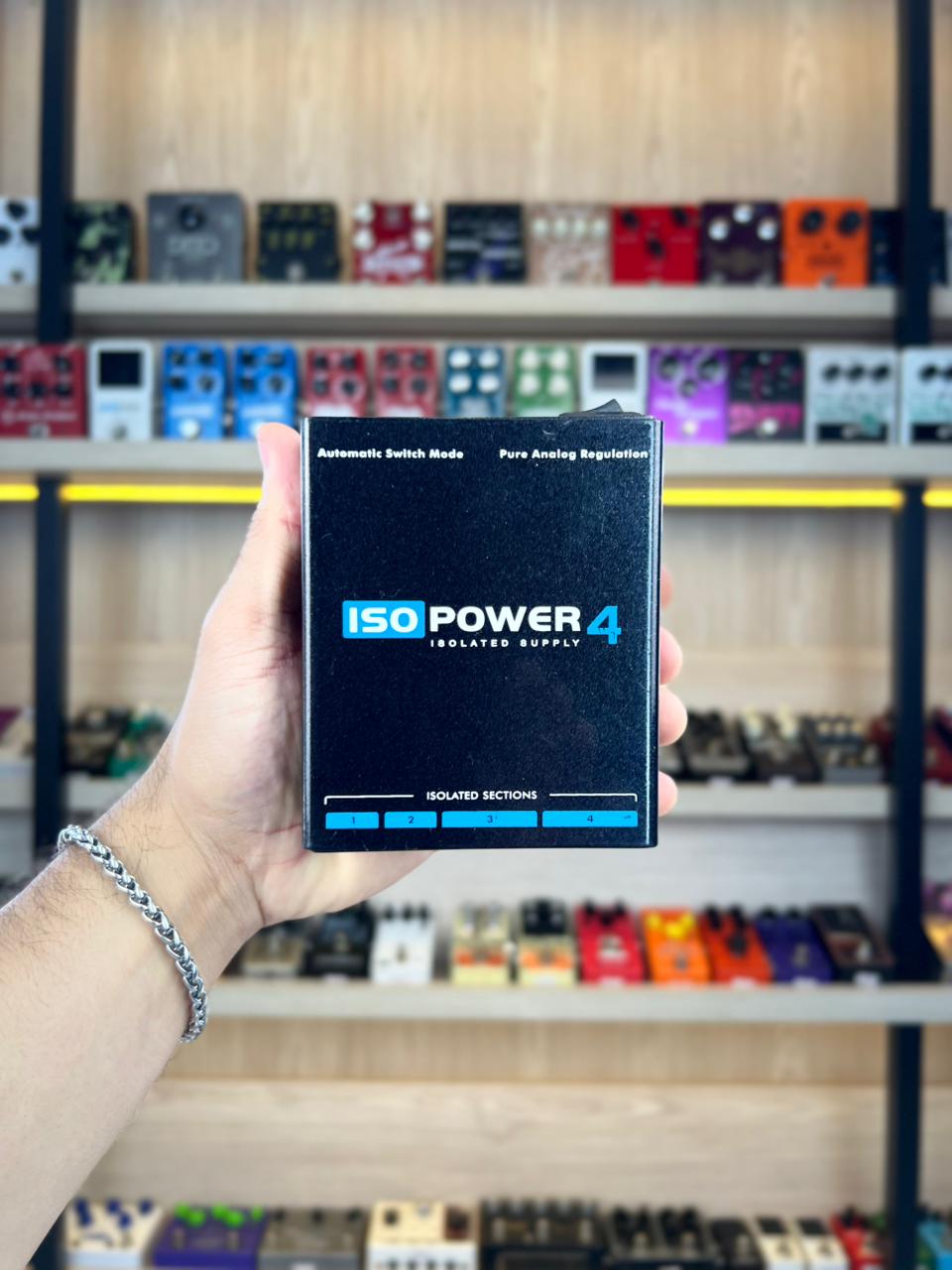 A fonte ISOPOWER 4 é a melhor solução para pedalboards pequenos com pedais digitais e analógicos, com incrível capacidade de corrente em 4 seções isoladas.