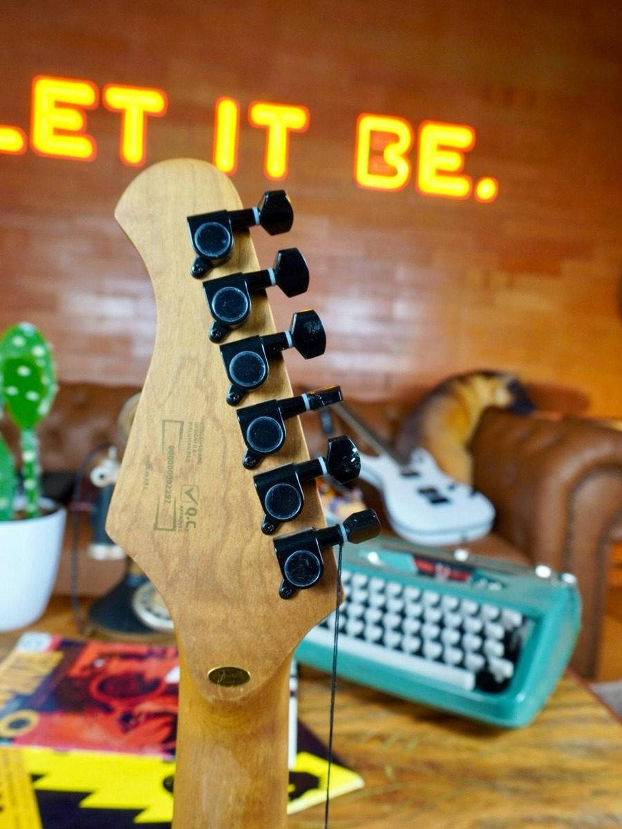 Guitarra Waldman ST-441X LGS, estilo Strato, captação HSS, ponte Tremolo, com 22 trastes em Aço Inox. Na cor Antique White Satin. Acompanha Bag.