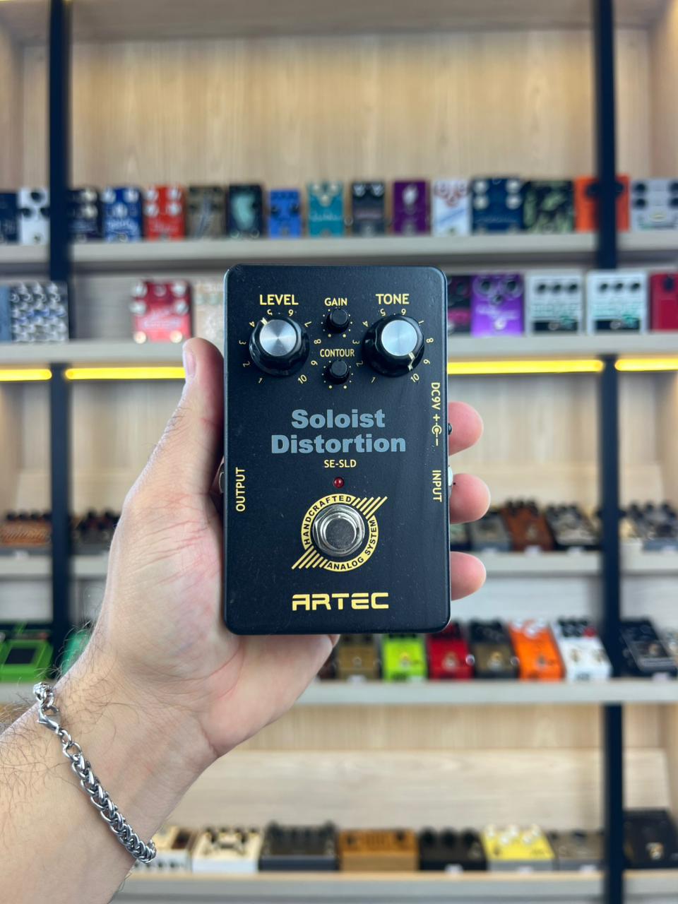O ARTEC SOLOIST DISTORTION é um pedal de distorção especialmente projetado para solos. Possui baixo ruído e alta sustentação. Muito versátil, pois com seus controles abrangentes, você pode ir de um som estilo Fender Tweed até um Distortion bem agressivo e pesado.
