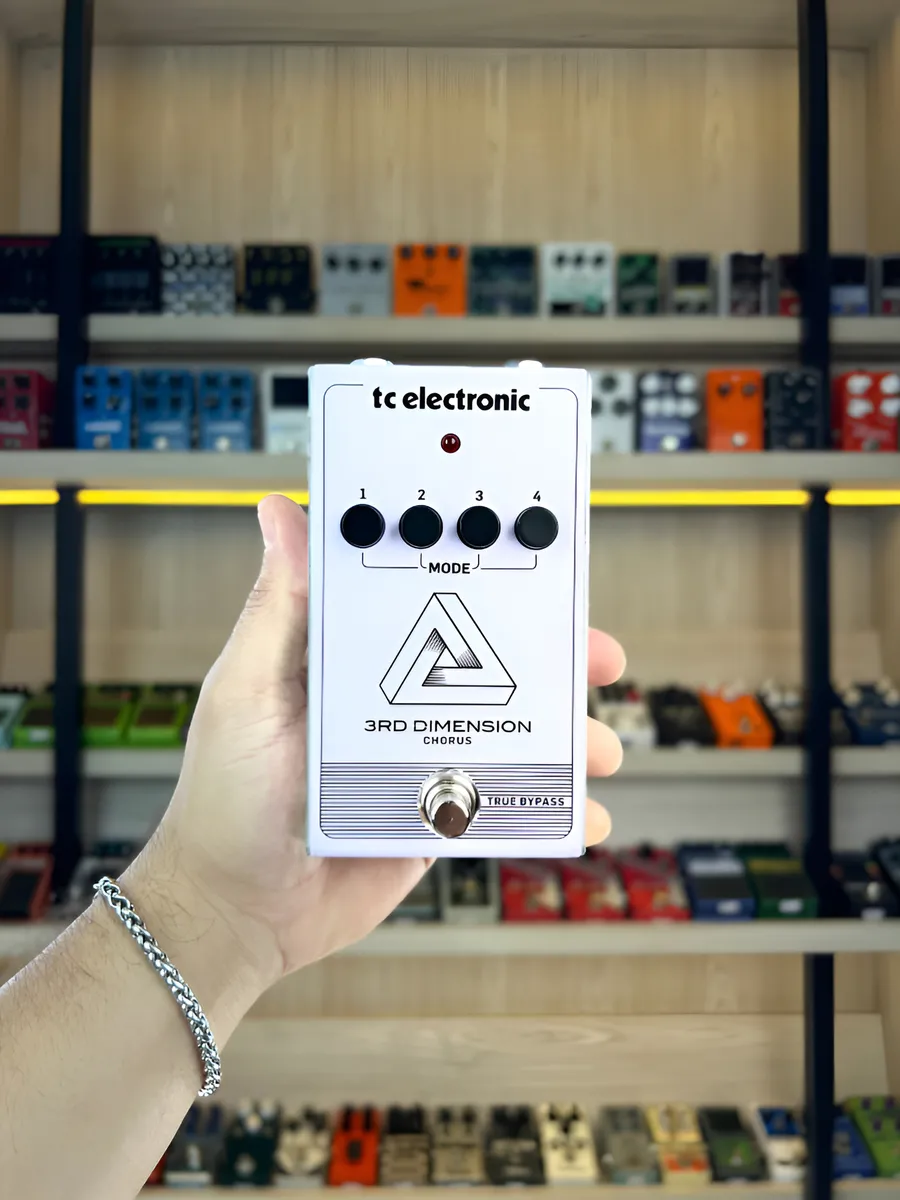 O TC Electronic 3rd Dimension Chorus é um tipo exclusivo de efeito de chorus “imóvel” que reproduz aquele reconhecível tom limpo dos anos oitenta.