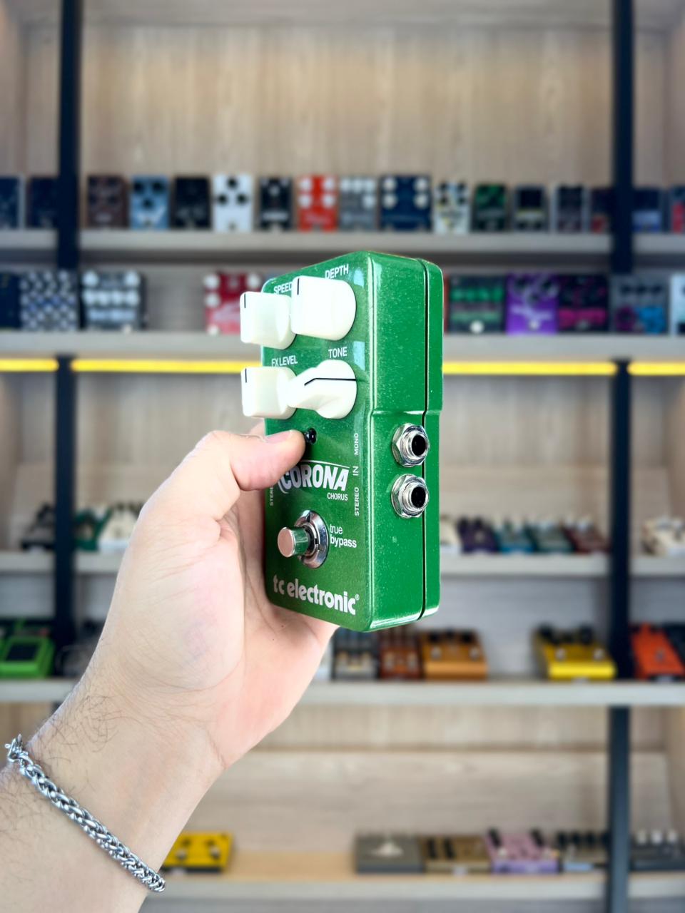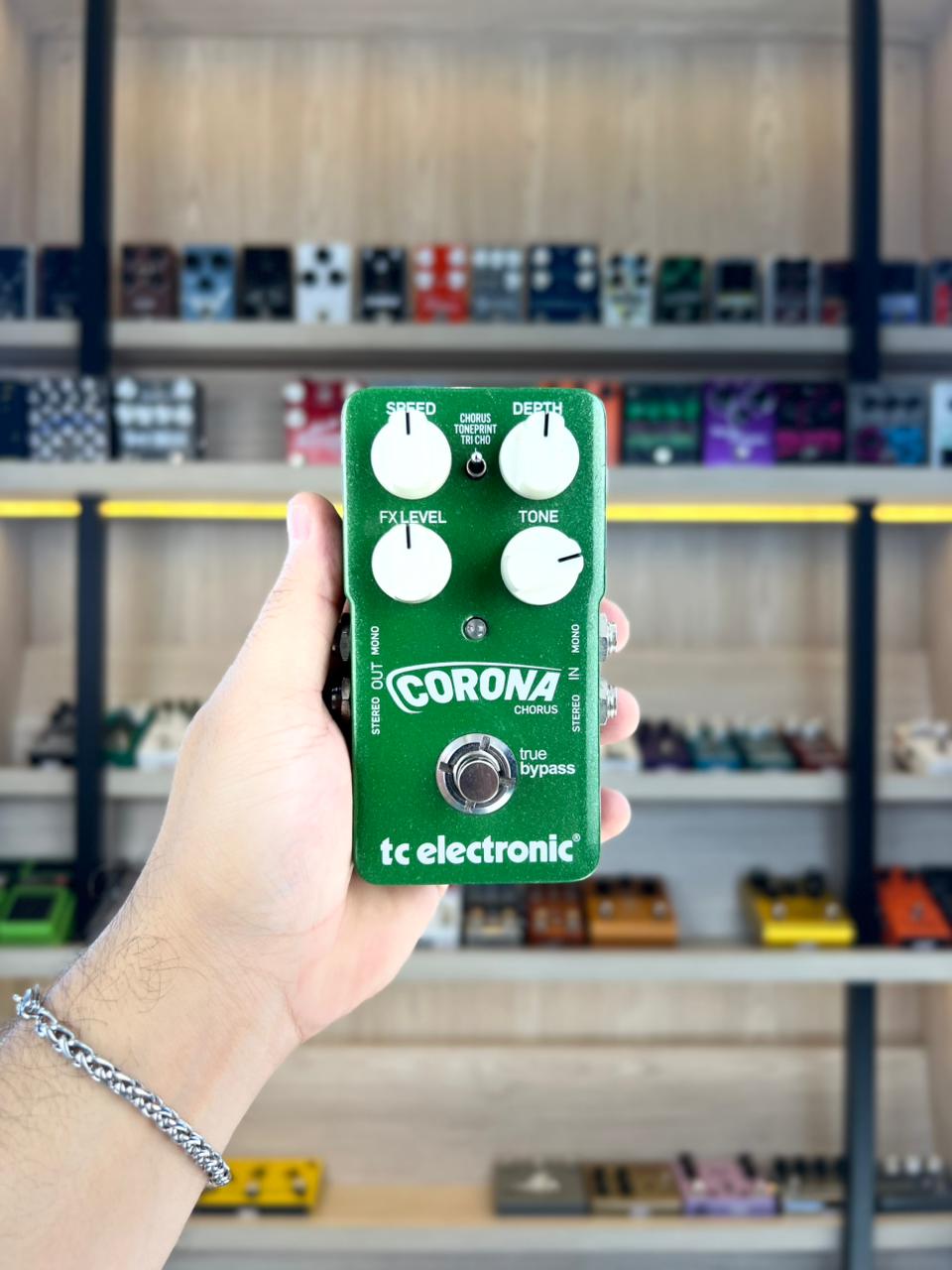A TC Electronic conseguiu juntar no pedal Corona Chorus as principais características de um chorus analógico às sofisticações do chorus digital, sem perder a tônica e orientação unindo versatilidade e naturalidade. O Corona vem com as duas configurações distintas de chorus, que incluem características do clássico e mundialmente renomado TC Electronic SCF com possibilidades para ajustes personalizados através do TonePrint.