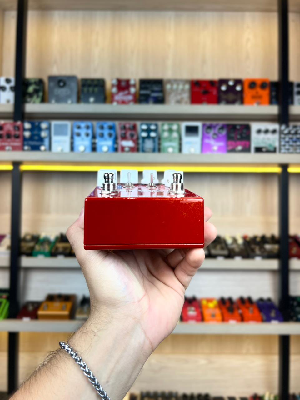 A primeira coisa que você notará é o equalizador de 3 bandas. Com ele, você poderá esculpir seu timbre como nunca antes. Também adicionamos boosts de graves e brilho, para que você possa obter aquele timbre fresco ou o impacto de um 4×12”. Em seguida, adicionamos o boost de pré-ganho baseado em “Valve Screamer” (que você pode usar quando o pedal estiver desativado) – todos sabemos como esse estilo de circuito impulsiona os estágios de ganho… E a arma secreta. Na lateral está o seletor SAG. Isso permite que você remova aquele crunch flácido e aprimore drasticamente a resposta, então – esta versão 2 oferece não apenas uma versão atualizada de um clássico do Wampler, mas também uma infinidade de novos recursos que serão irresistíveis para os caçadores de timbres em todos os lugares!